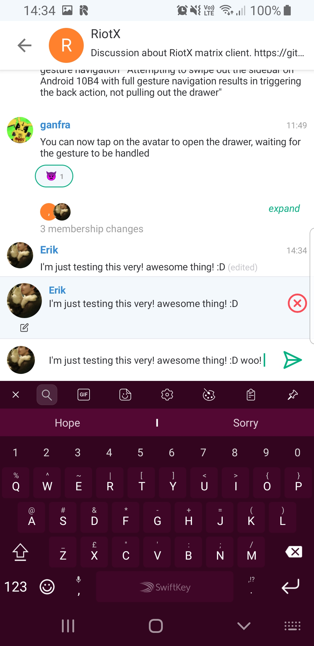 Just to give a quick taster of the shape of things to come, here’s RiotX/Android, the all-new Riot client for Android, showing off Edits & Reactions in the wild…